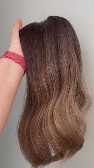BRAND Her Hair My Head COLLECTION Super Flat toppers NAME Andie COLOUR Mid-dark brown base with balayage starting 5” from the root that has a mix of caramel brown and...