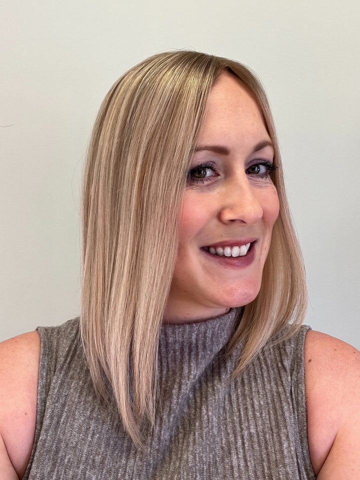 COLOUR Charlie: dimensional blonde with a mix of creamy blonde, light blonde and warm blonde highlights, with an ashy dark blonde root.