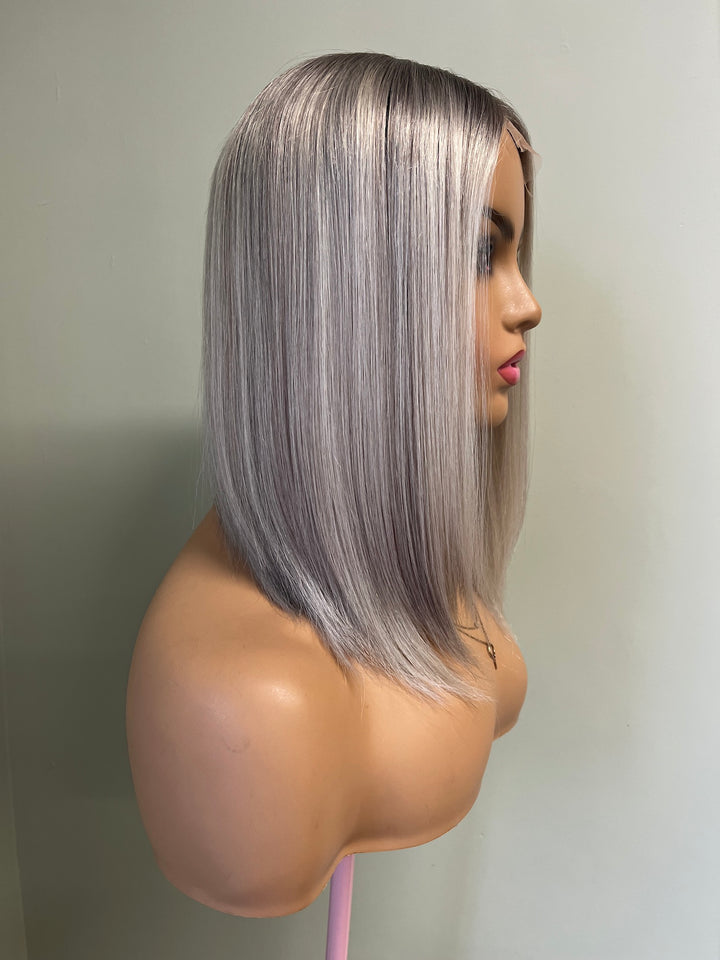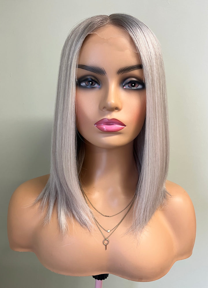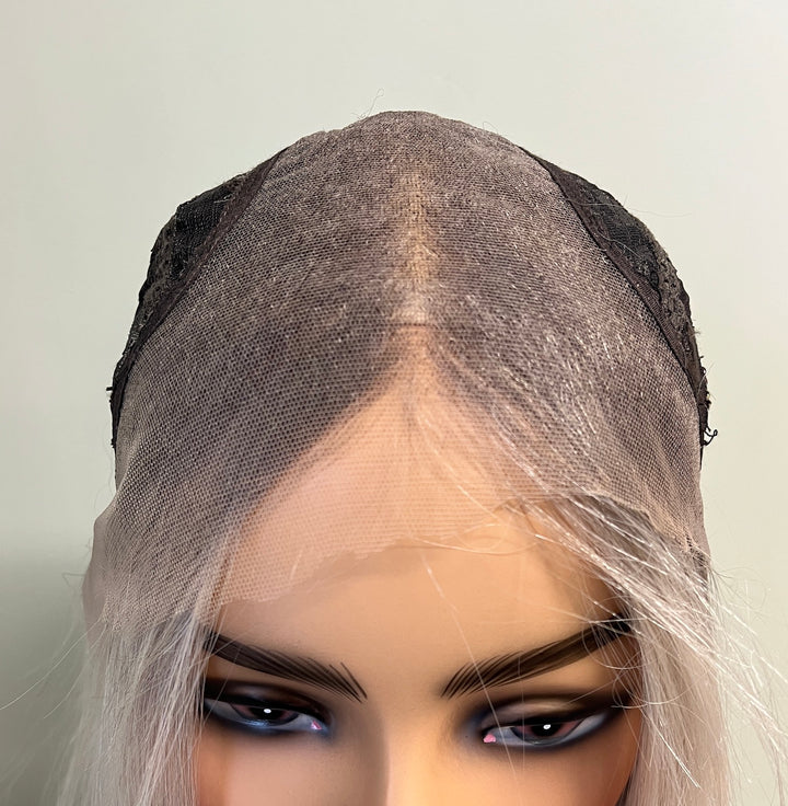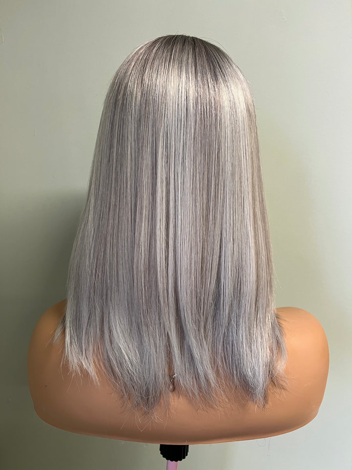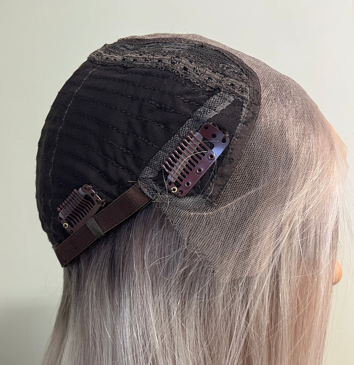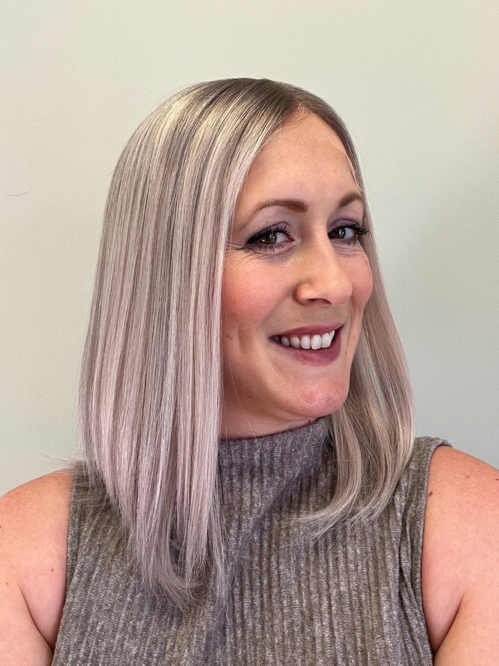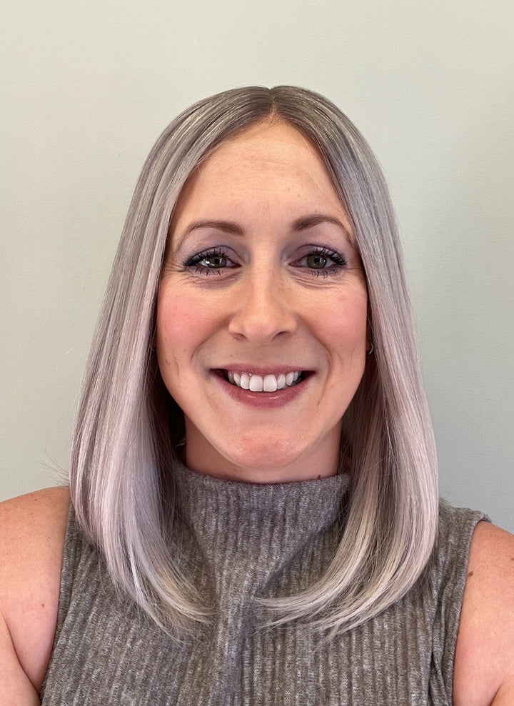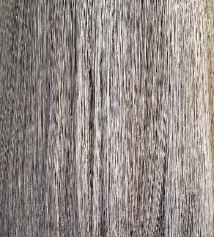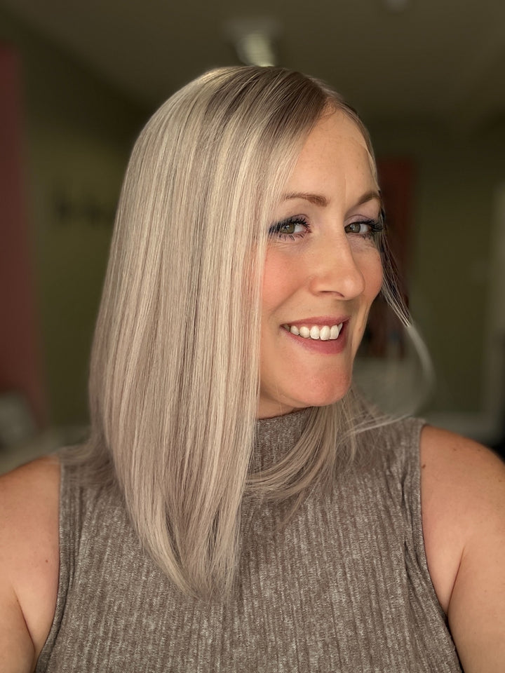 BRAND Her Hair My Head COLLECTION Super Flat toppers NAME Elsa COLOUR Light grey 2” root fading into a mix of light ashy blonde, white and light grey. Photos shown in...