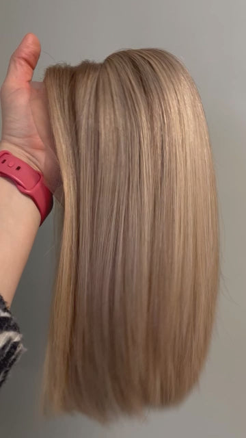 COLOUR A warm, dark blonde base with creamy blonde and light blonde highlights throughout, which start approximately 1.5" from the base.
