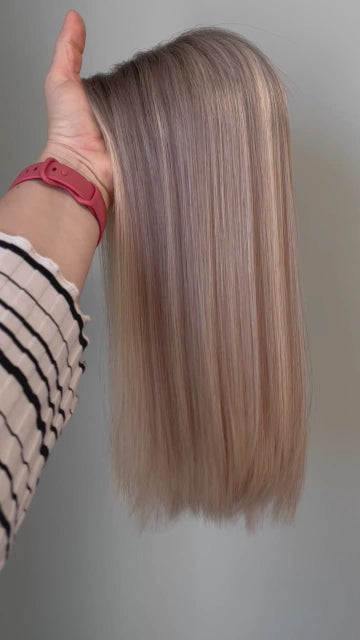 COLOUR A dimensional blonde with a blend of dark blonde, creamy blonde and light ashy blonde. This colour has a 1.5" dark ashy blonde root. This colour is similar to Charlie, but cooler-toned and ashier with a slightly darker root.