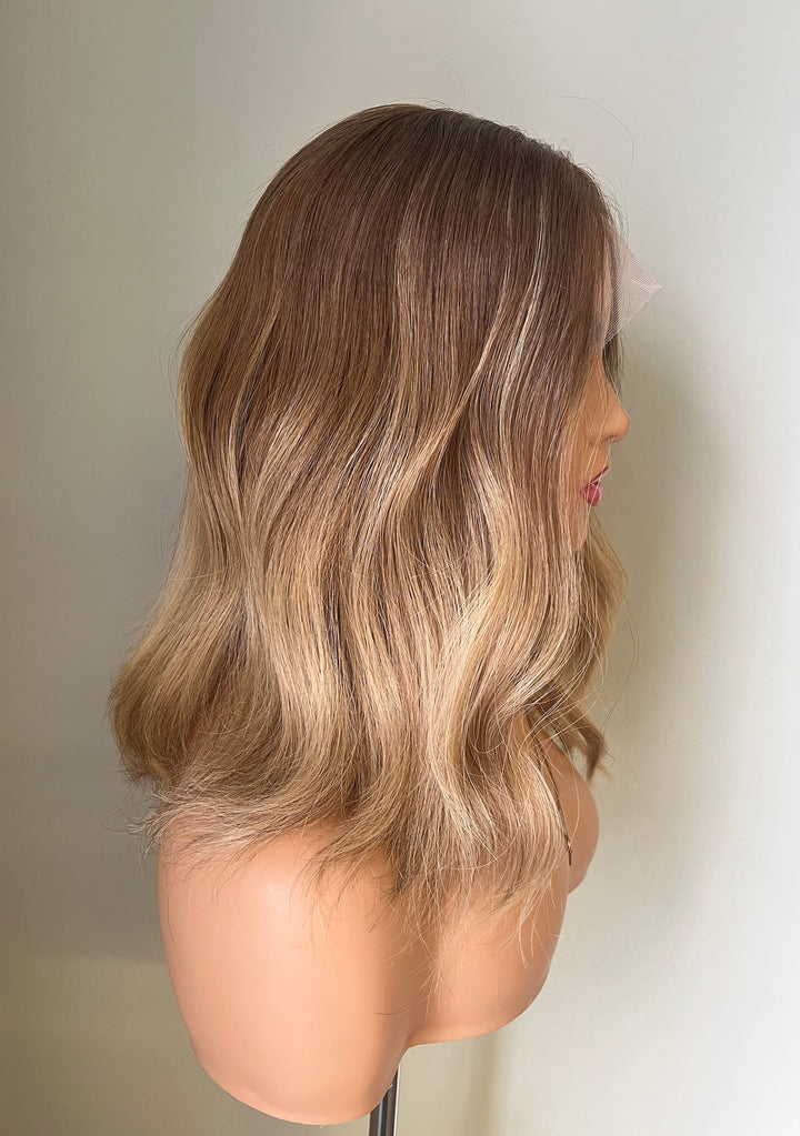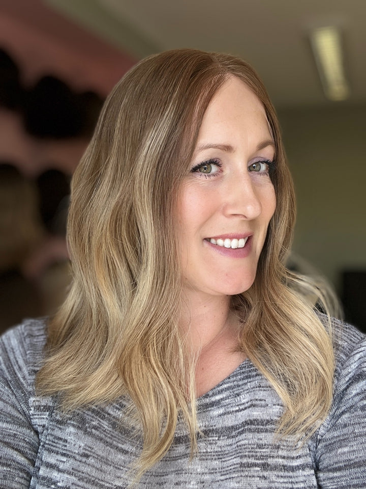 BRAND Her Hair My Head COLLECTION Luxury wigs NAME Mila COLOUR Golden light brown base with warm blonde balayage that starts 5-6” from the root. Photos shown in indoor lighting and direct...
