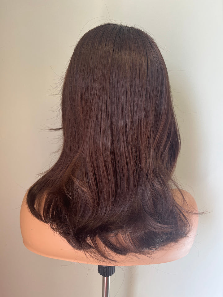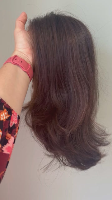 COLOUR Plum Brown Rooted: Dark Auburn, Red Violet, and Deep Wine Red blend with Dark Shaded Rooted and a lighter colour around the face