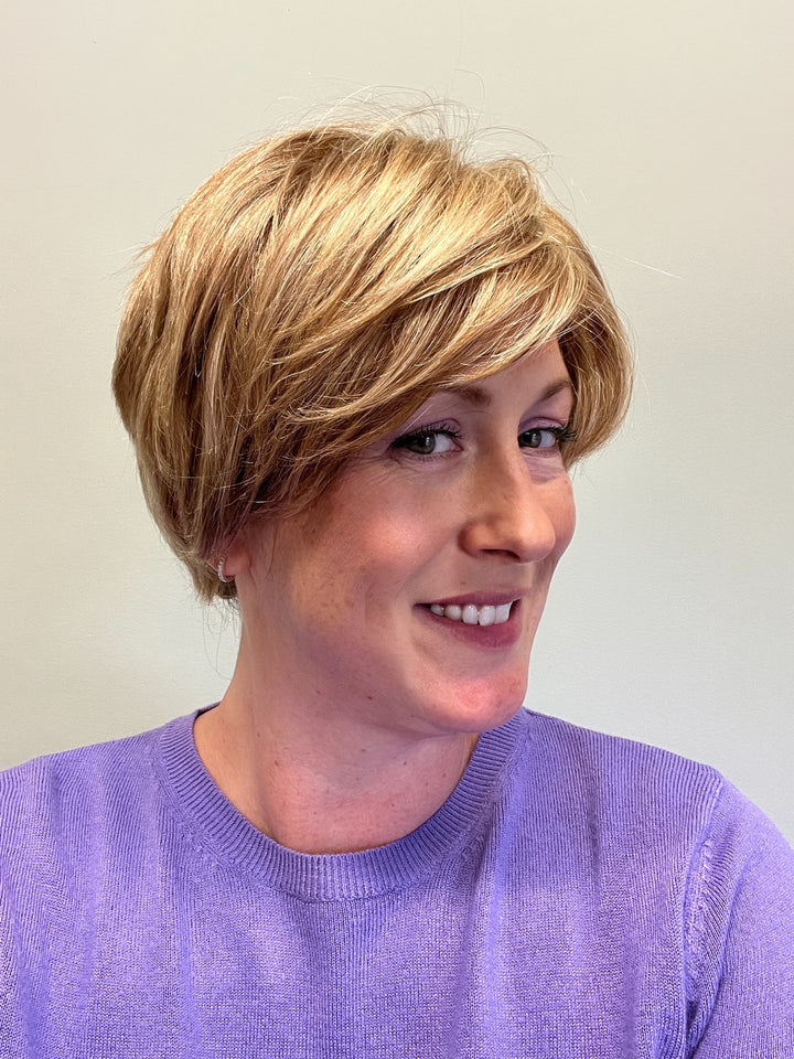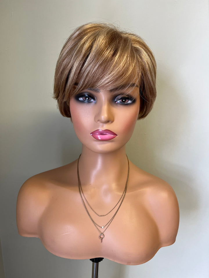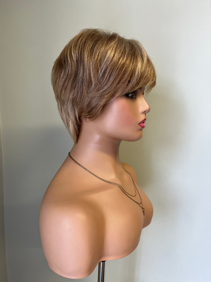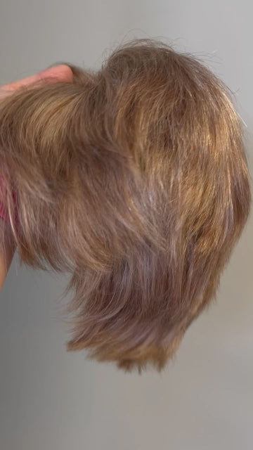BRAND Hair Fairy Wigs WIG NAME Unknown CAP SIZE Petite COLOUR Warm, dark golden blonde with creamy blond highlights HAIR TYPE Russian REMY human hair LENGTH The layers are approximately 5"...